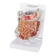 Model is a cut-away view of the small & large intestine with the following common pathologies: adhesions, appendicitis, bacterial infections, cancer, Crohn's disease, diverticulitis, polyps, spastic colon, & ulcerative colitis. This product contains a model, an informational card, & display base. The full size of the model measures 6” x 2-1/2” x 7-3/4”. The size of the card measures 6-1/4” x 8-1/4”. The size of the base measures 6-1/2” x 5”. Our model is great for doctor's offices and healthcare facilities.