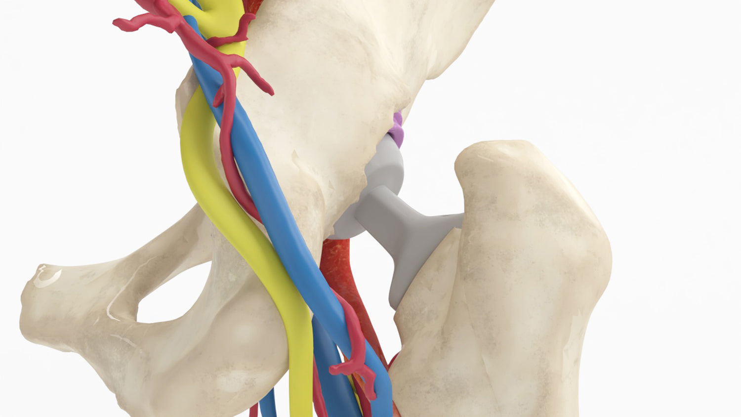 Shows anteriorly proud acetabular cup with abrasion on the iliopsoas tendon following total hip arthroplasty, causing pain. The model demonstrates how the release of the tendon with iliopsoas fractional lengthening (IFL) prevents abrasion while retaining muscle control.