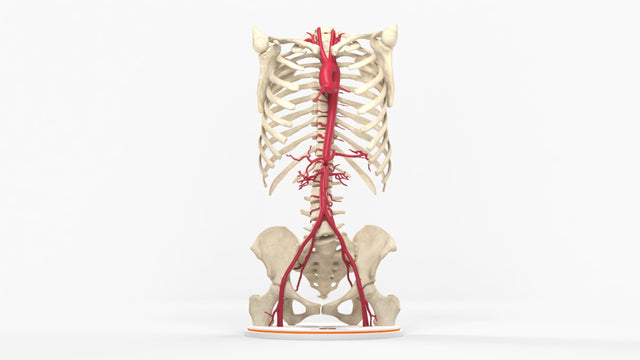 The aorta is the largest blood vessel in the body, serving as a conduit to deliver oxygenated blood to the head and body from the heart. In a resting state, it carries 5-6 liters of oxygenated blood per minute. The aorta is divided into four sections.